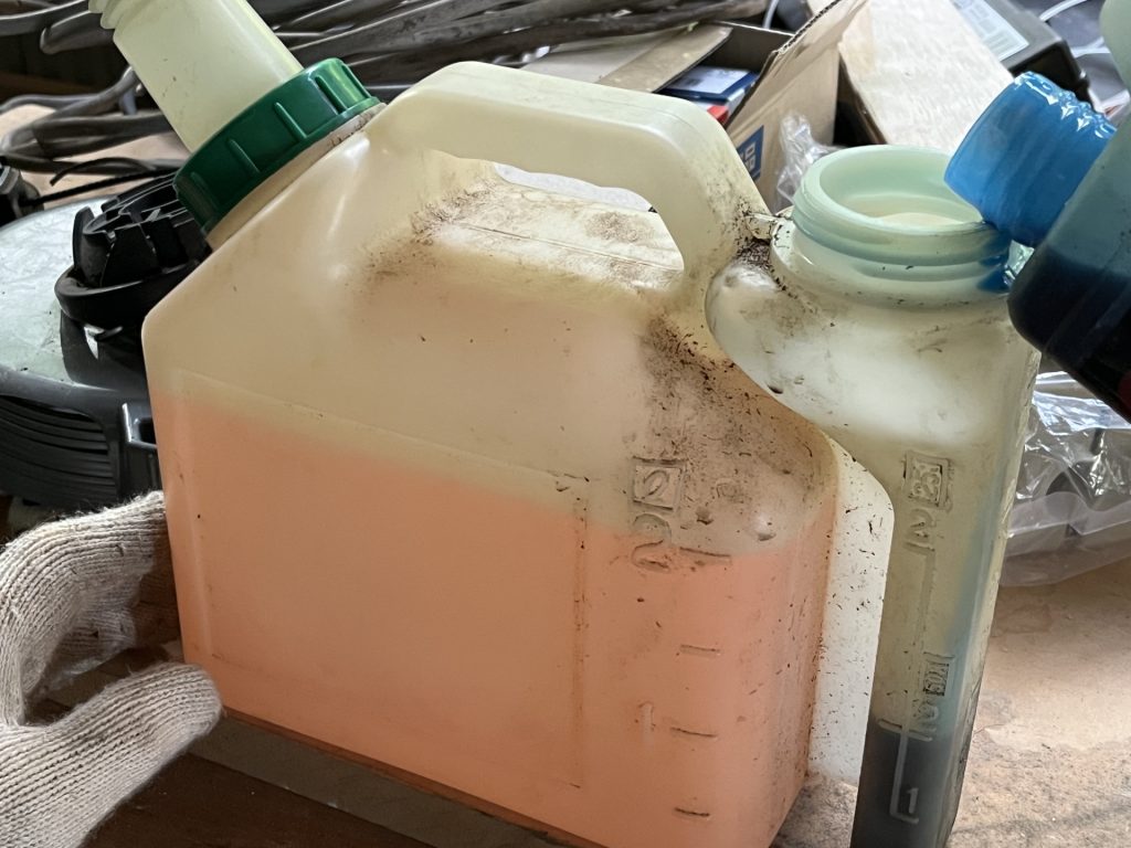 混合燃料を自作する場合は、使用するガソリンとエンジンオイルの比率を正確に計算し、適切な容器で混ぜ合わせましょう。例えば、50:1の比率なら、ガソリン1リットルに対してオイル20ミリリットルを加えます。専用の混合燃料タンクを使用すると便利です。