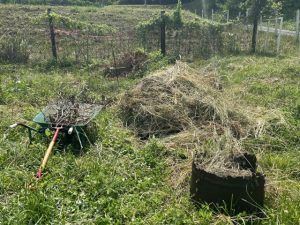 刈草を畑や庭の敷き草にすることで、地面の乾燥を防ぐ効果があります。この「雑草マルチ」は、畑で使うビニール資材の代わりにもなり、環境にも優しい方法です。ただし、雑草の種が残っている場合は、刈草の管理に注意が必要です。